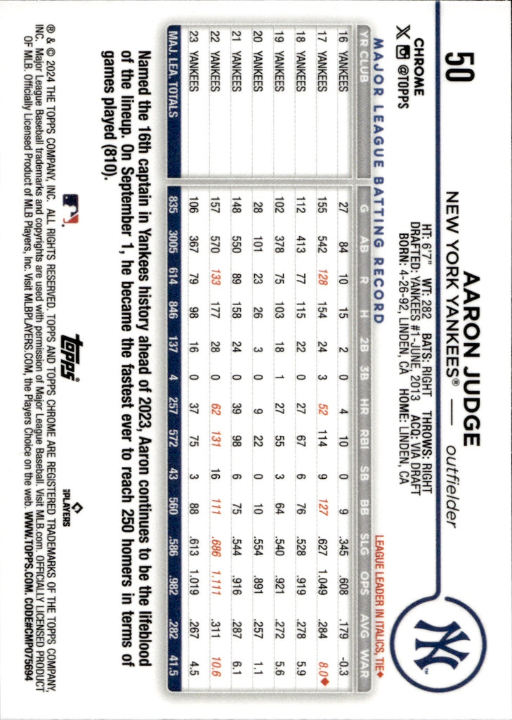 2024 Aaron Judge Topps Chrome New York Yankees #50 1