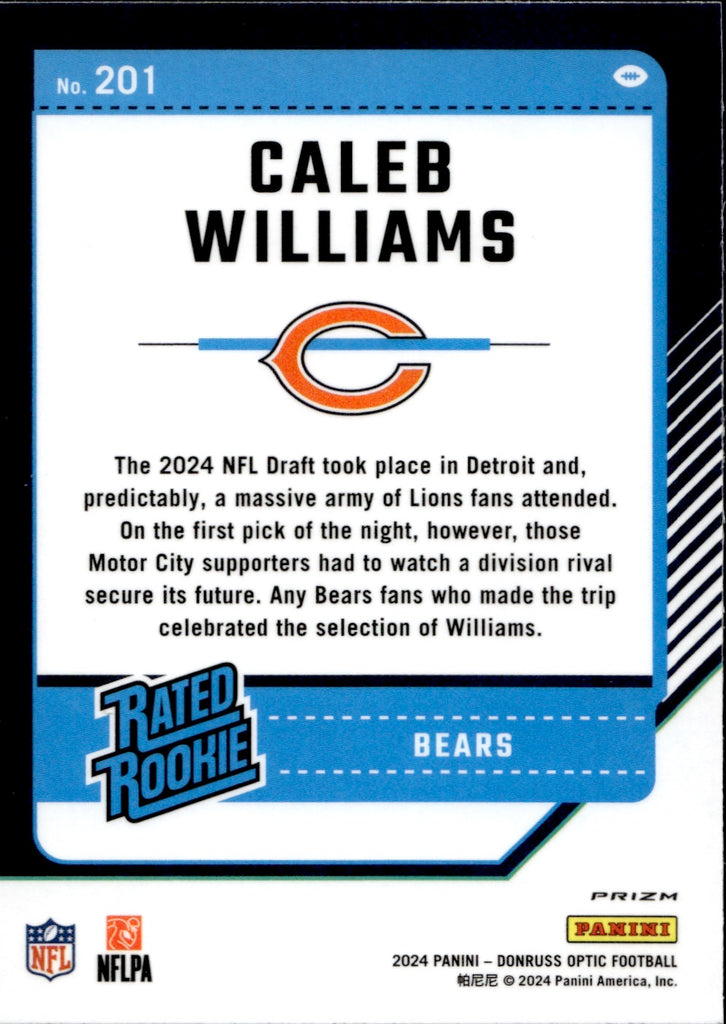 2024 Caleb Williams Donruss Optic HOLO SILVER RATED ROOKIE RC #201 Chicago Bears
