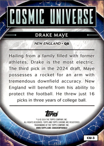 2024 Drake Maye Topps Cosmic Chrome COSMIC UNIVERSE SP ROOKIE RC #CU-3 New England Patriots