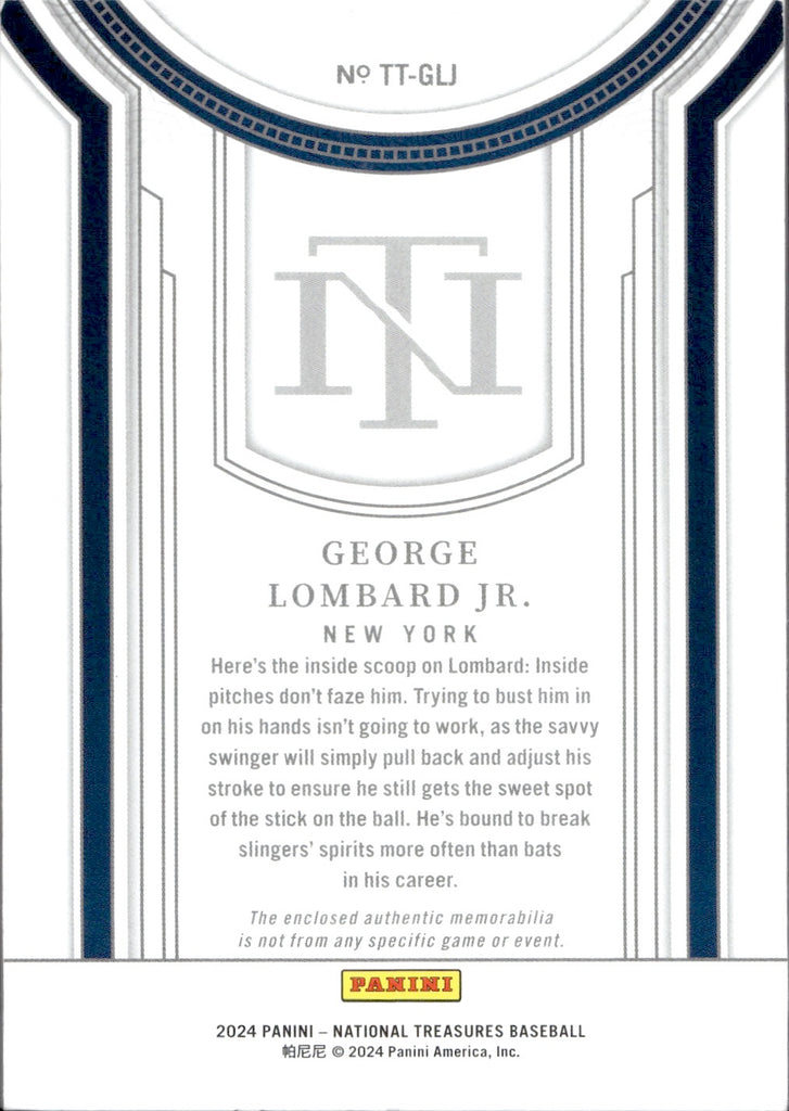 2024 George Lombard Jr. Panini National Treasures TREASURED THREADS JERSEY PATCH 12/25 #TT-GLJ New York Yankees