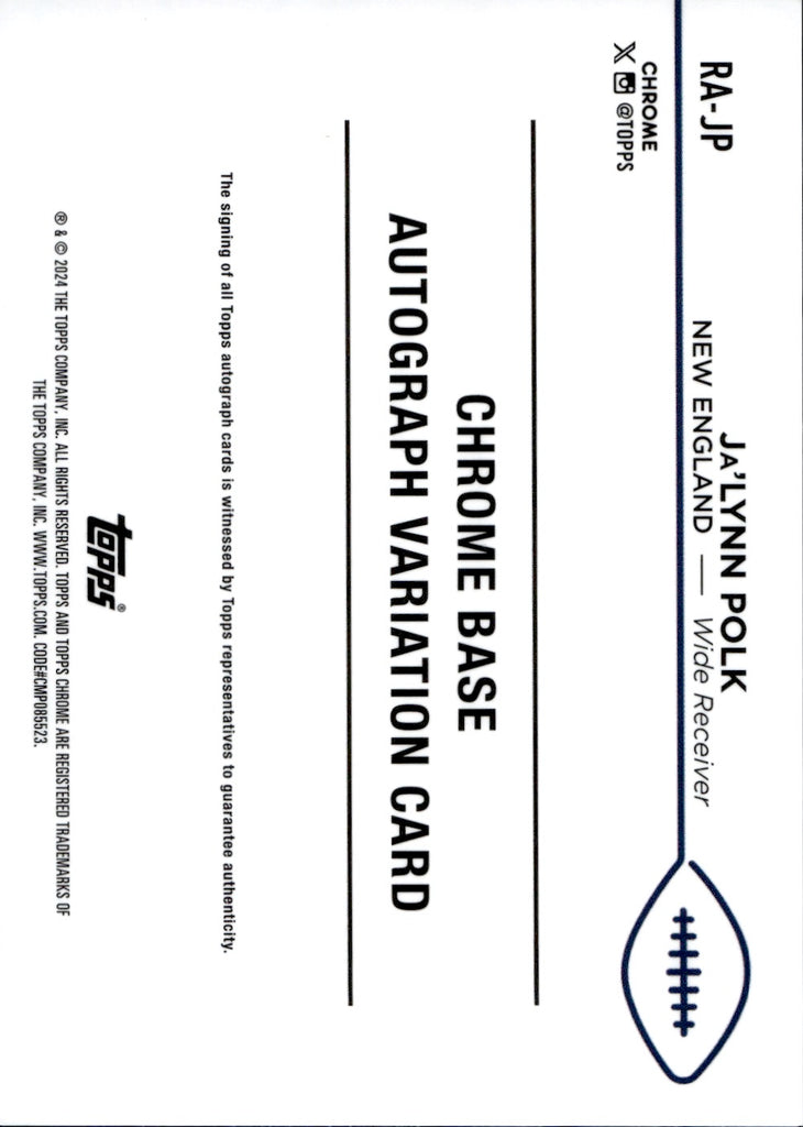 2024 Ja'Lynn Polk Topps Chrome REFRACTOR ROOKIE AUTO New England Patriots #RA-JP