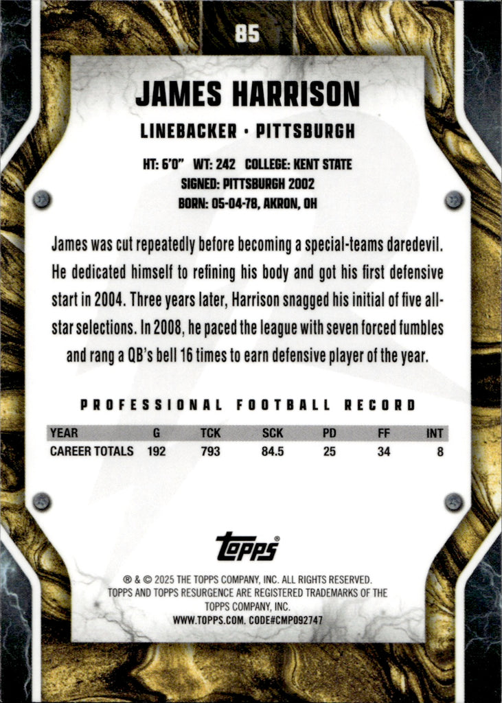2024 James Harrison Topps Resurgence WHITE SURGE JERSEY NUMBER 92/125 Pittsburgh Steelers #85