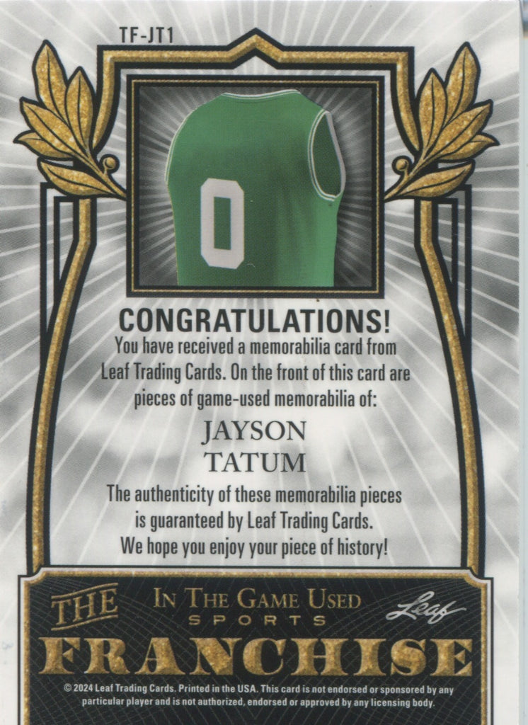 2024 Jayson Tatum Leaf In the Game Used THE FRANCHISE PINK FOIL TRIPLE MEMORABILIA JERSEY 14/30 RELIC #TE-JT1 Boston Celtics