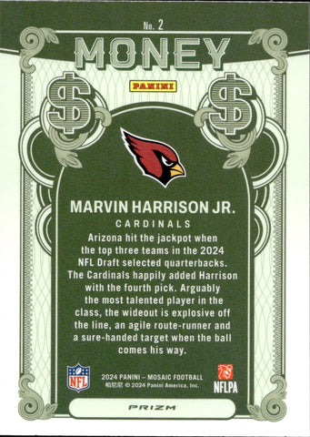 2024 Marvin Harrison Jr. Panini Mosaic MONEY PRIZM ROOKIE RC #2 Arizona Cardinals