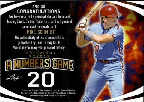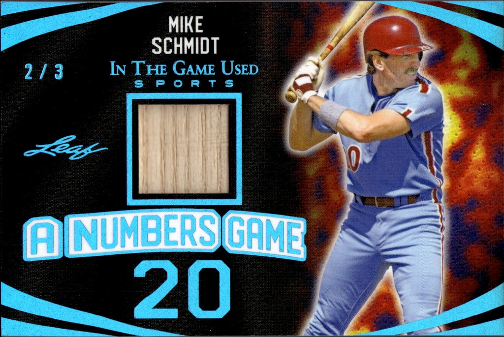 2024 Mike Schmidt Leaf In the Game Used PLATINUM BLUE A NUMBERS GAME BAT 2/3 RELIC #ANG-36 Philadelphia Phillies HOF