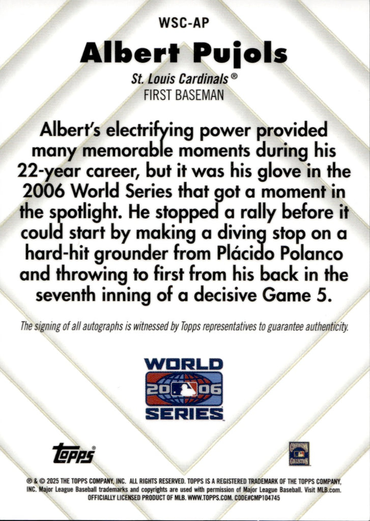 2025 Albert Pujols Topps Chrome WORLD SERIES CHAMPION AUTO 058/100 AUTOGRAPH #WSC-AP St. Louis Cardinals