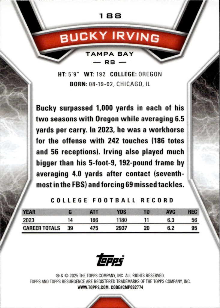 2025 Bucky Irving Topps Resurgance AQUA WAVE ROOKIE 248/249 RC #188 Tampa Bay Buccaneers