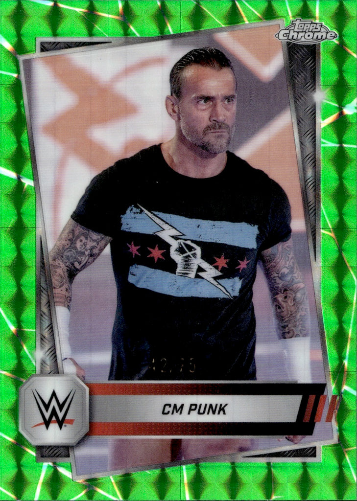 2025 CM Punk Topps Chrome GREEN GEOMETRIC REFRACTOR 42/75 #98