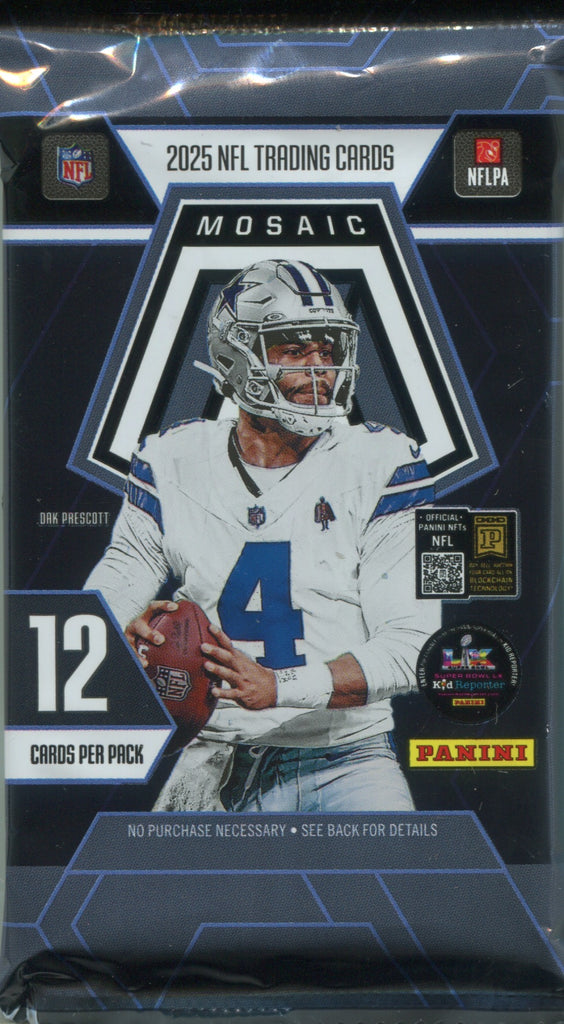- True to its vibrant legacy, 2025 Mosaic Football delivers one of the most colorful, powerfully paralleled base sets of the year, featuring the game’s biggest current stars, most promising rookies and most iconic legends!