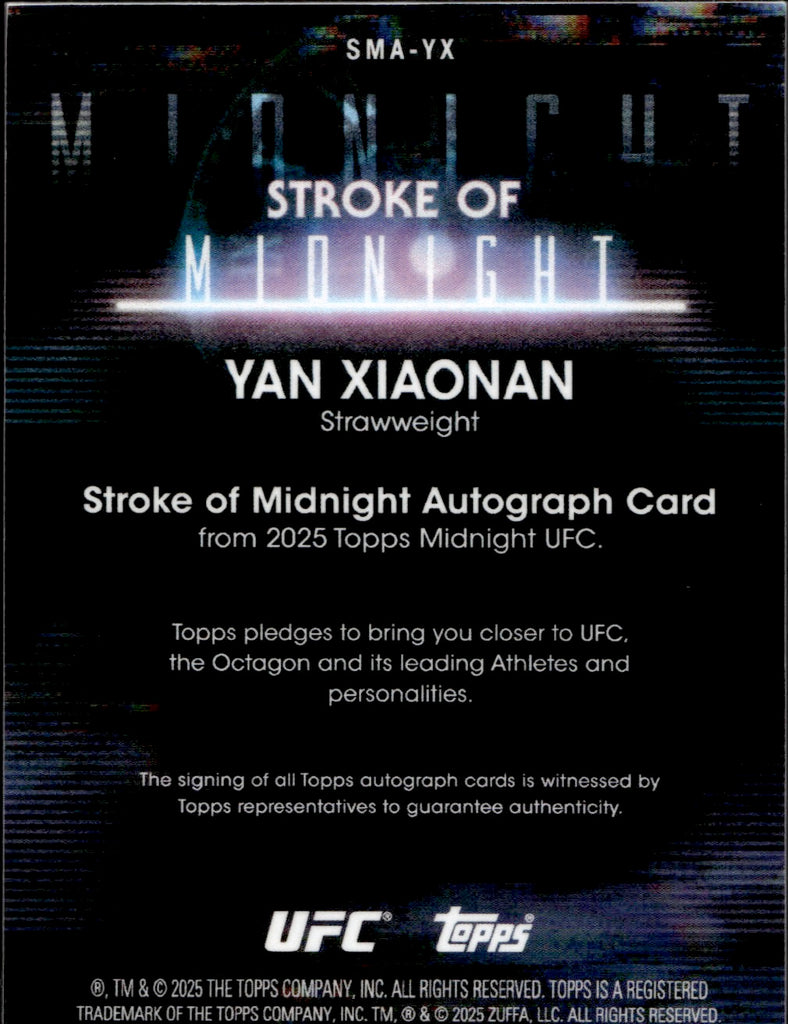 2025 Yan Xiaonan Topps Midnight STROKE OF MIDNIGHT AUTO AUTOGRAPH #SMA-YX Strawweight