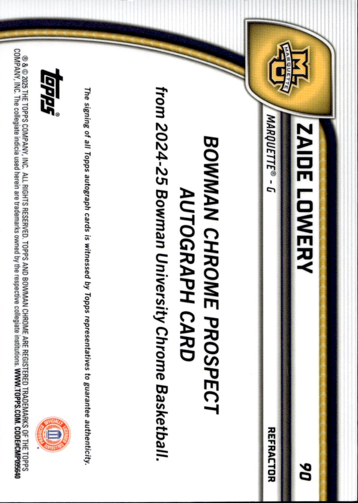 2025 Zaide Lowery Topps Bowman Chrome REFRACTOR AUTO Marquette #90