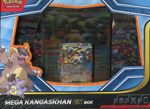 - Team up with Mega Kangaskhan ex as a playable foil promo card and an oversize lenticular version for display, then open four booster packs to find even more cool cards!